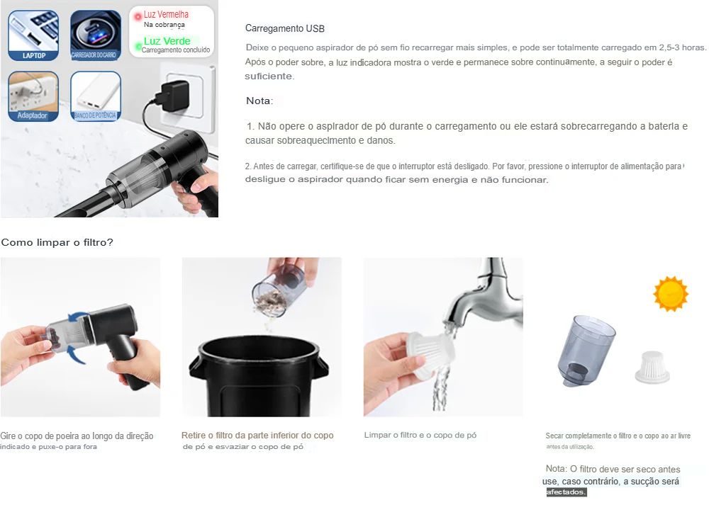 Aspirador de Pó Portátil Premium – Tecnologia de limpeza moderna com a elegância que você merece.