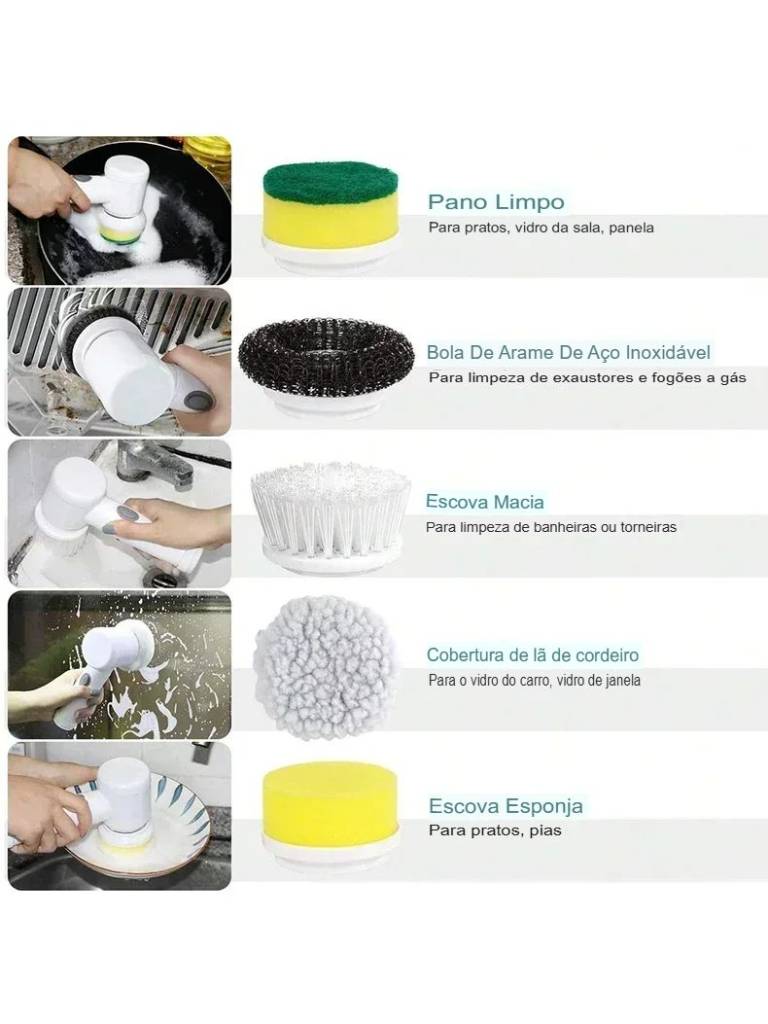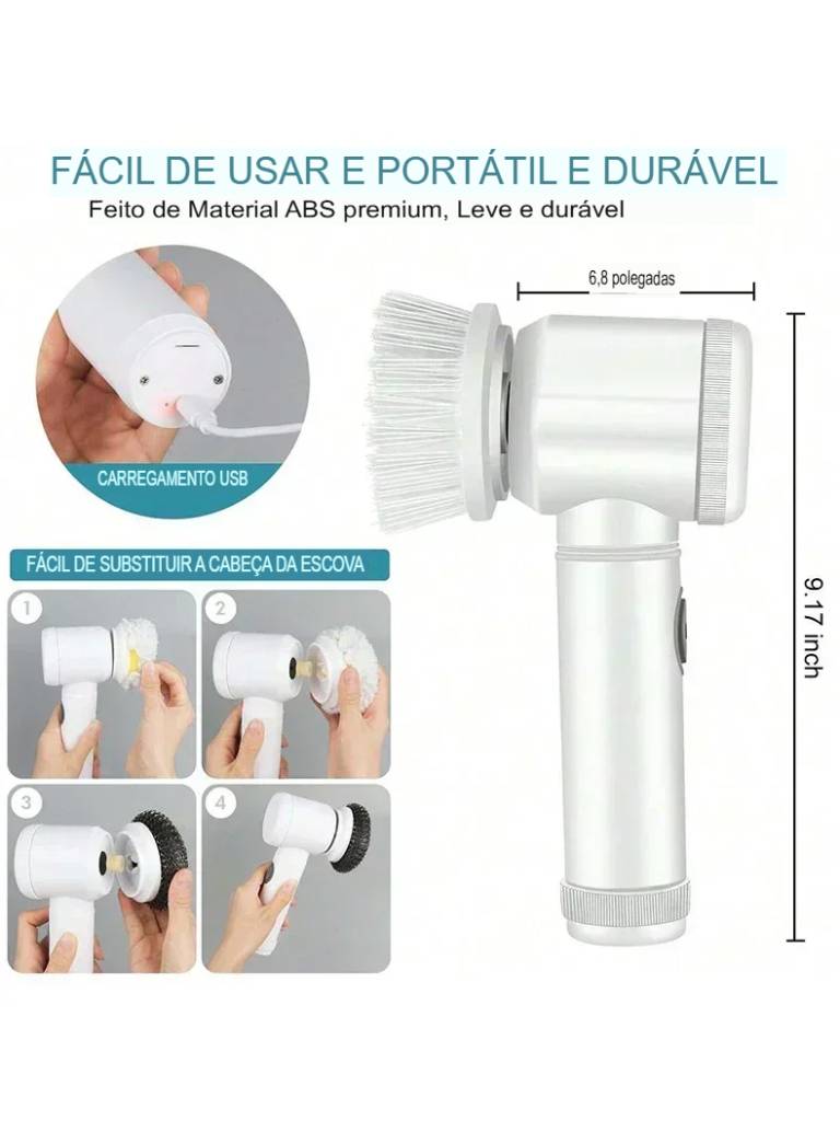 Acessórios: 5 cabeças de limpeza intercambiáveis