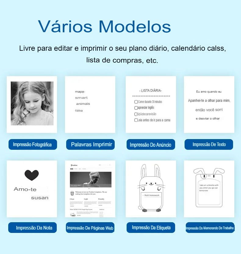 Transforme momentos, ideias e anotações em registros reais com a Mini Impressora Térmica Portátil Bluetooth.